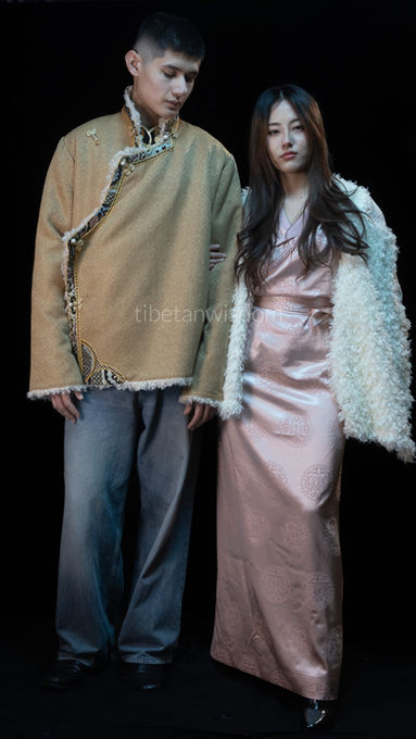Rose-colour Tibetan Traditional Shirt with Brocade